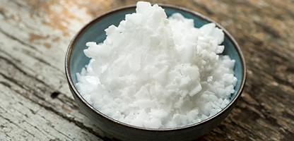 Solid form of potassium hydroxide used in soaps, detergents, and various industrial applications.